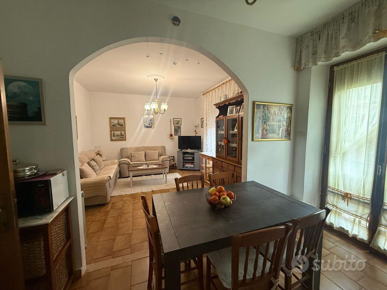 In Asciano, we exclusively offer an apartment on the raised ground floor in a convenient and well-served location, measuring approximately 80 sqm. It includes a spacious entrance/hallway, storage room, dining area with living room and kitchen, two large bedrooms, and a windowed bathroom. A storage/laundry room and private outdoor space are also included.