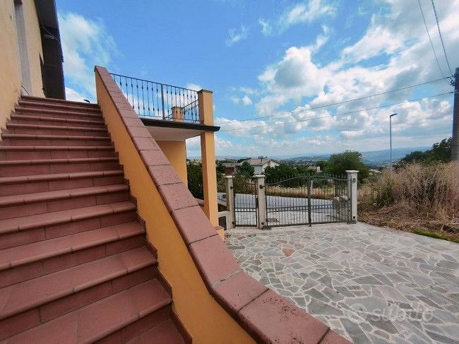 Ref: M130bis. In C.da Colle dell'Orso, we have for sale an apartment on the first floor of a two-level villa. The property includes an entrance, kitchen, two bedrooms, a bathroom, and a hallway, plus a private terrace with panoramic views and a fenced outdoor area.