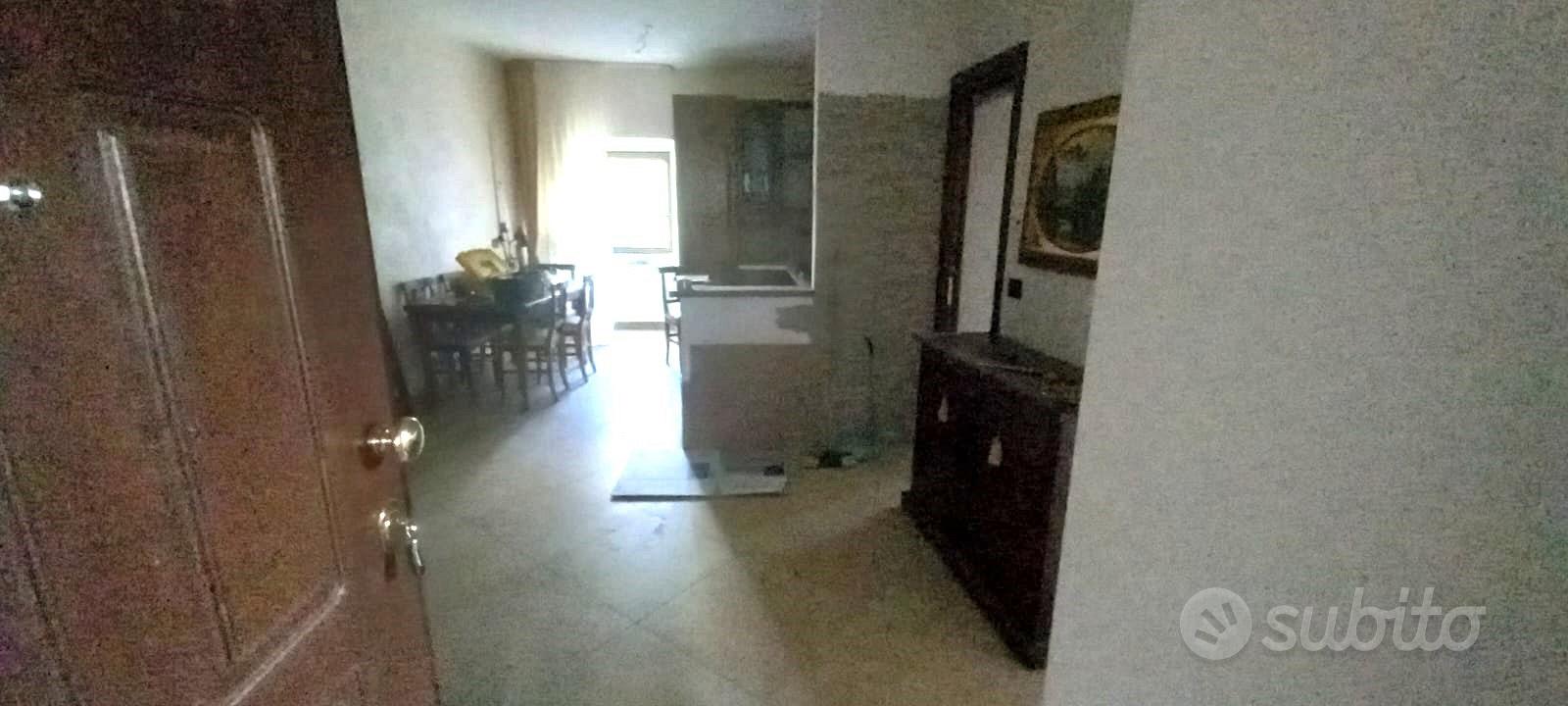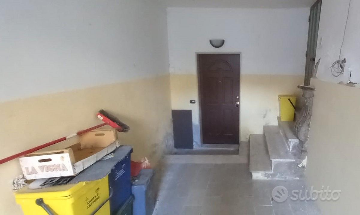 For sale, a very bright, central building at Via Appulo Lucana 57, comprising three independent, furnished apartments over two levels with a small garage. The first floor has two apartments with kitchen, bathroom, living room, bedroom, and balconies; the second floor has two bedrooms and a bathroom.