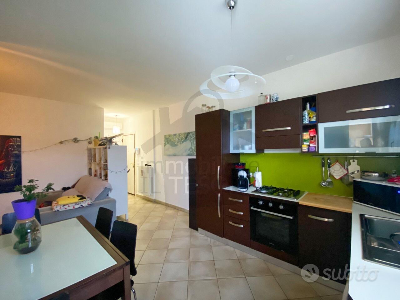 Reference: C055. In Villa Verucchio, in a quiet residential area of recent construction, we present an apartment for sale on the first floor with an elevator. It features a spacious living room with a kitchenette leading to a loggia terrace, a hallway, two bedrooms (the master with a balcony and a single room), a practical storage room, and a bathroom with a window.